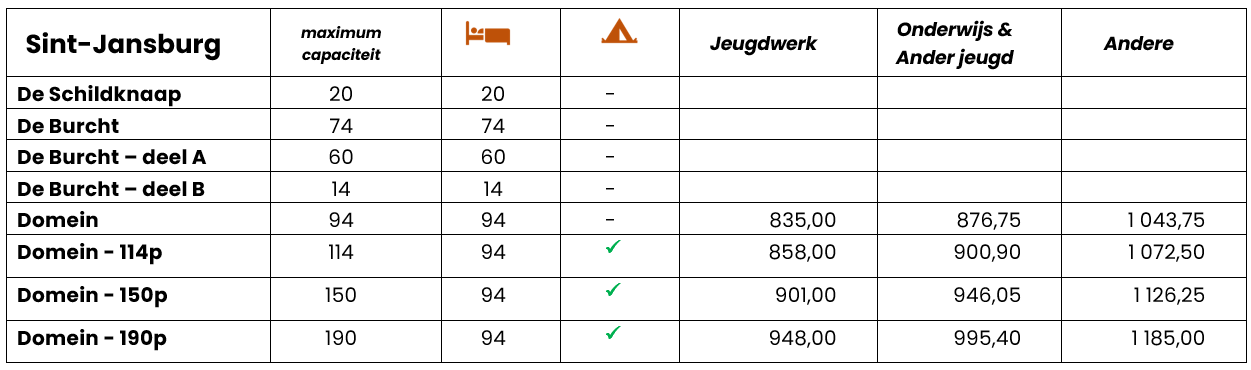 - Groepen die zich op het einde van hun verblijf wensen te onttrekken aan de natte opkuis van het gebouw, kunnen dit mits een aanvraag ruim op voorhand en het betalen van een vergoeding.